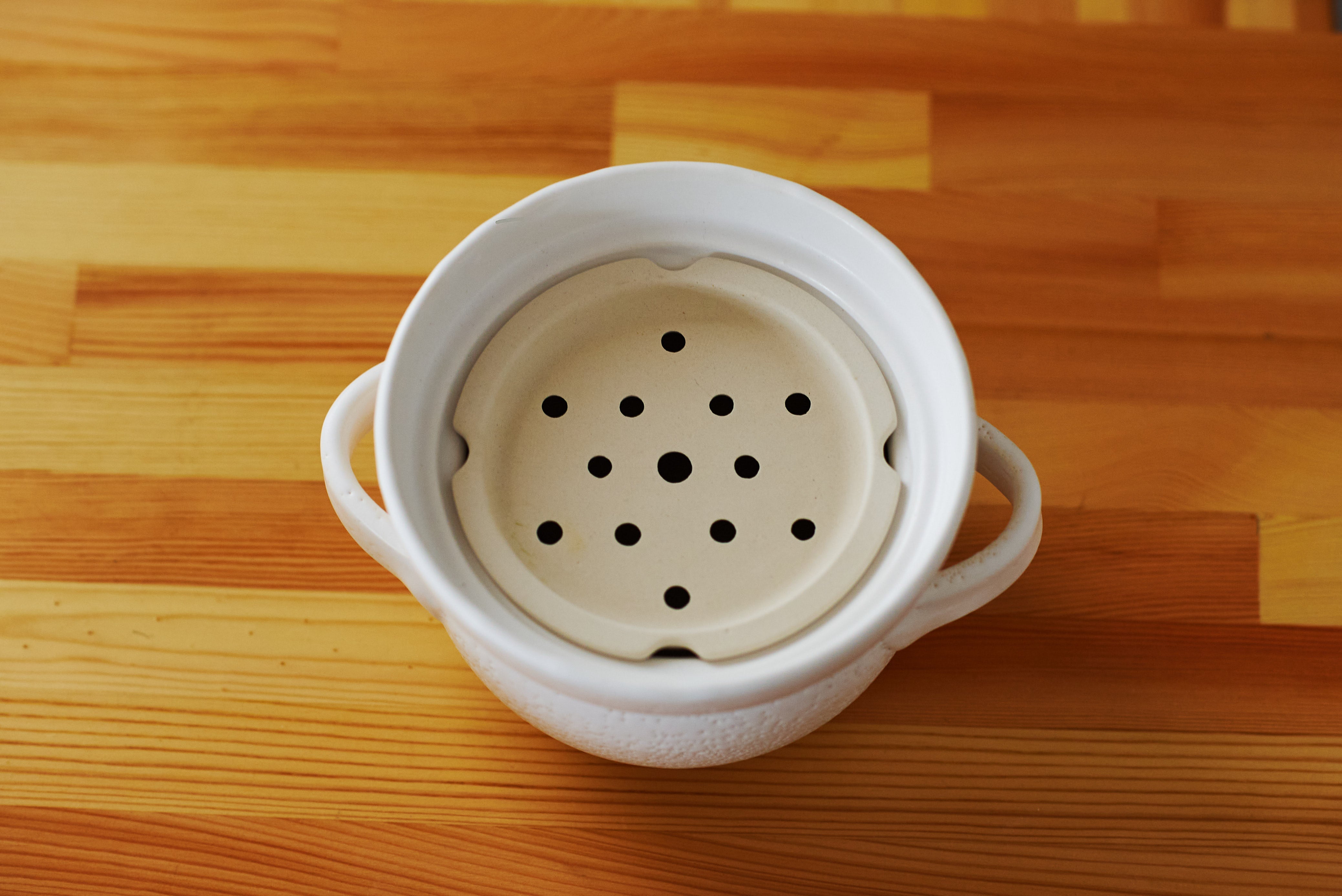入れるだけでお手持ちのお鍋が蒸し鍋に早変わり。 美味しくヘルシーな蒸し料理が簡単に出来上がります。 電子レンジでも直火でもお使いいただけます。